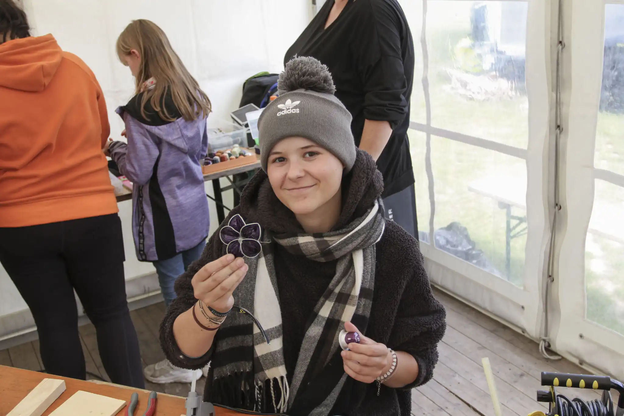 Kreativität & Nachhaltigkeit Das Basteln mit recycelten Kaffeekapseln zeigt, wie aus Wegwerfprodukten kleine Kunstwerke entstehen. Die Herstellung von Ei-Anzündern und die Verwendung ätherischer Öle beim Camping rundet das nachhaltige Workshop-Angebot ab.