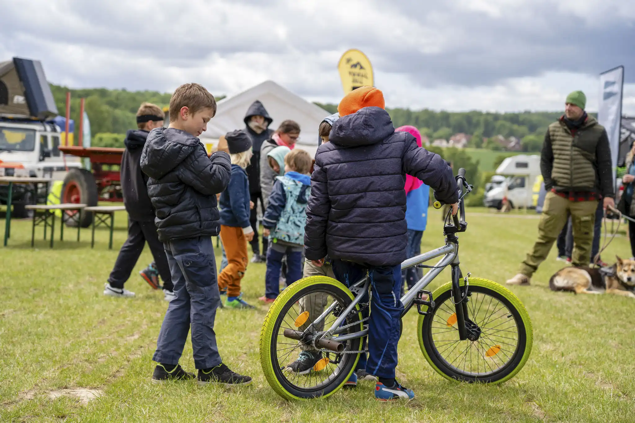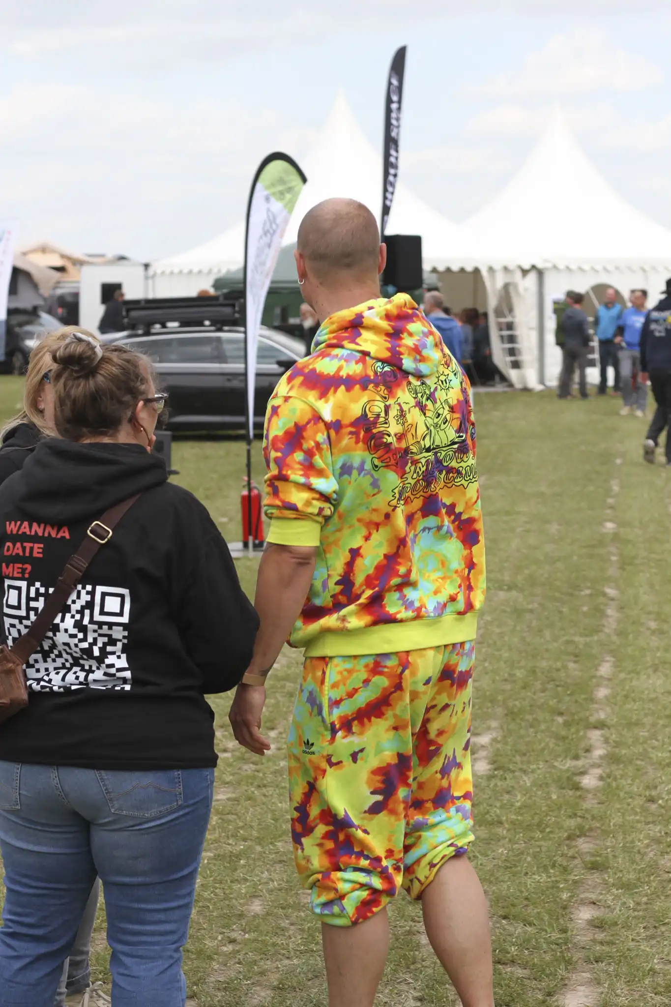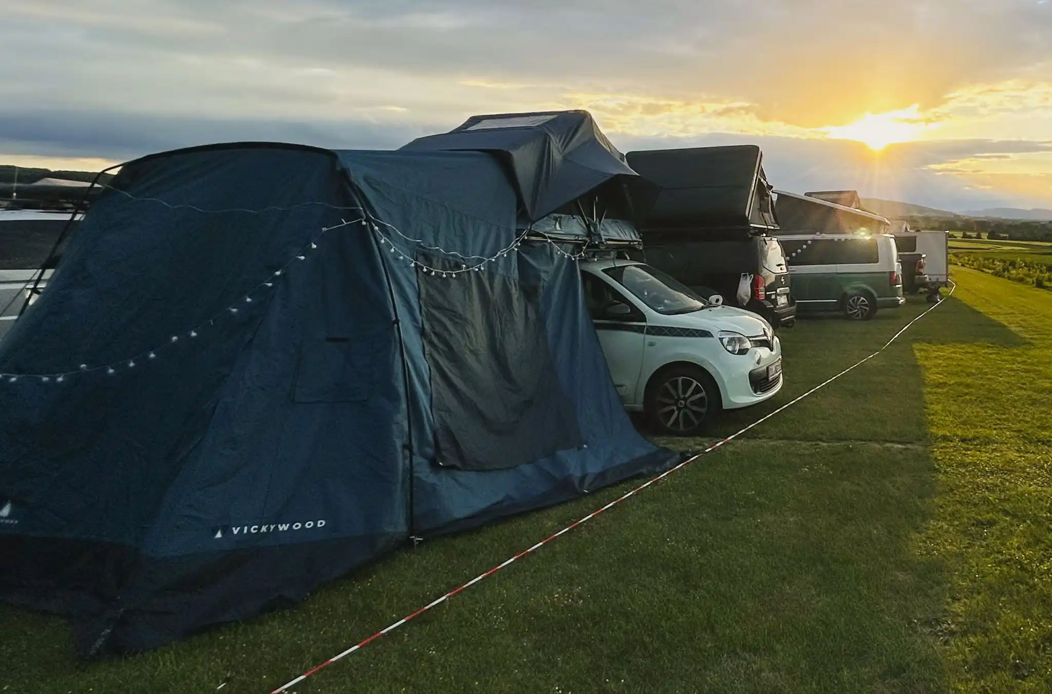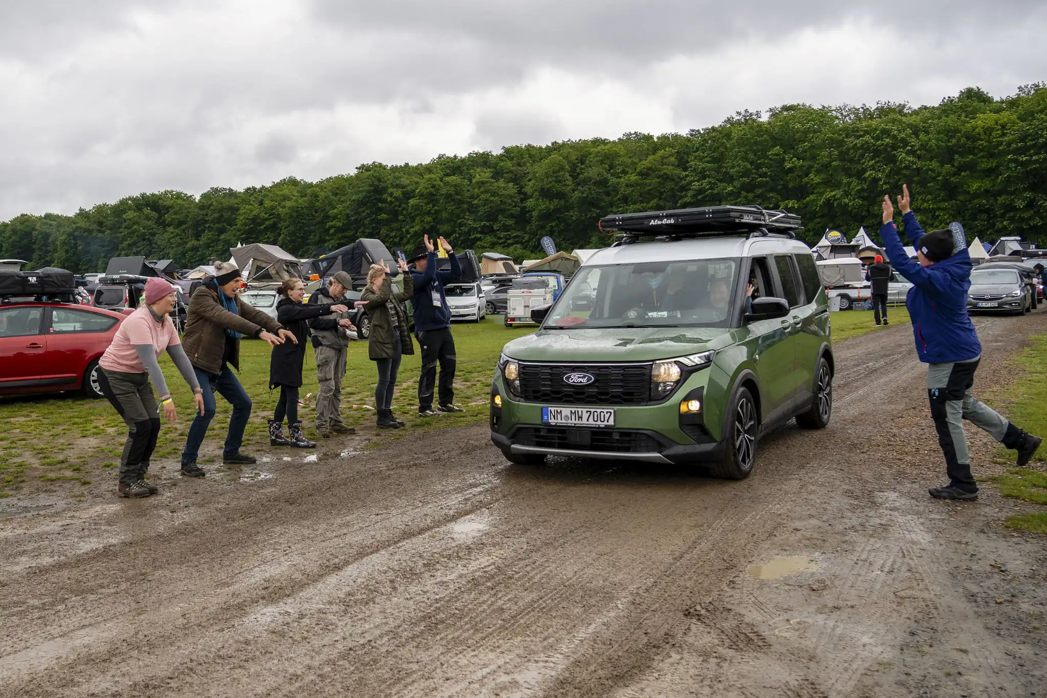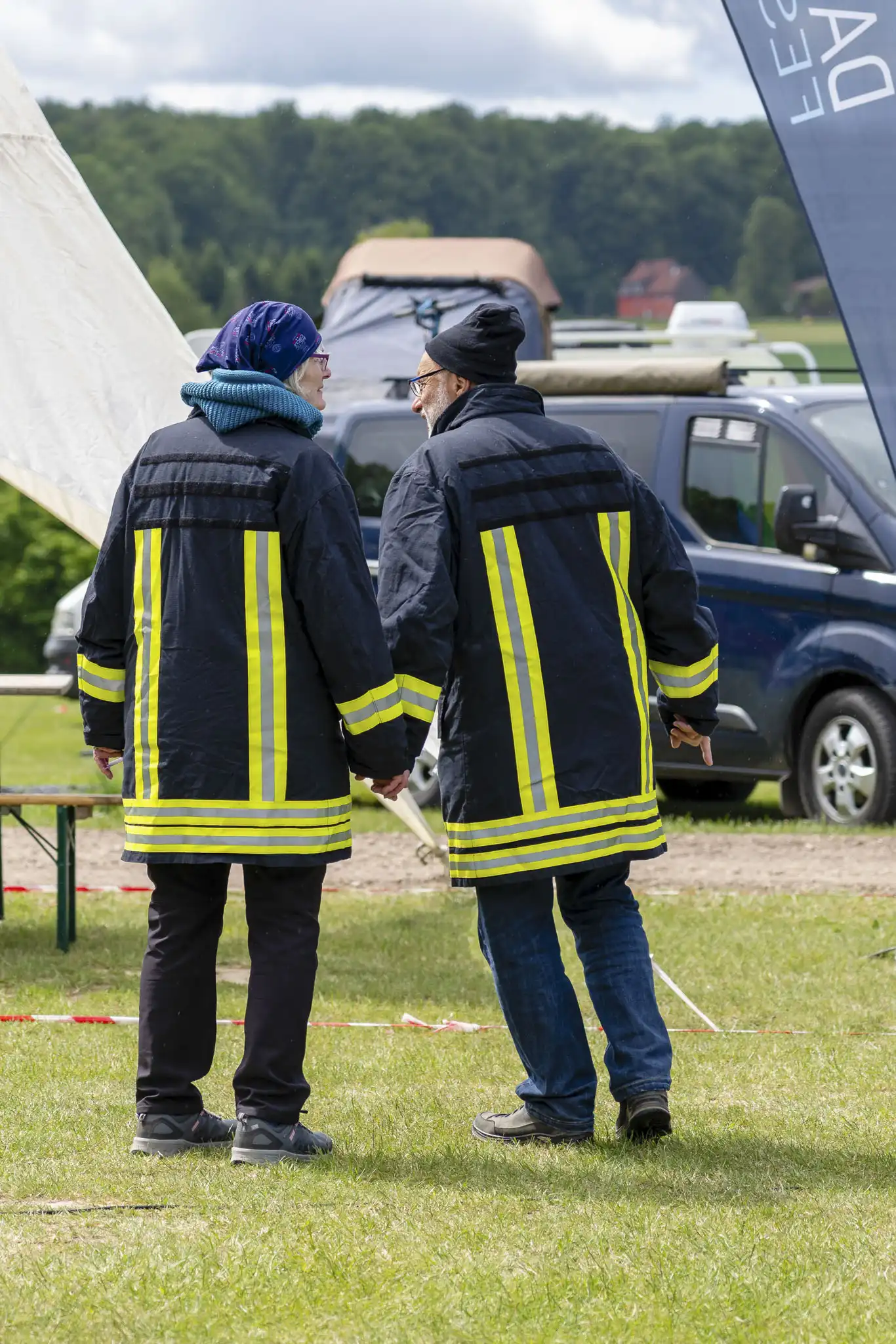 Trotz immer wieder kräftigen Regenschauern am Freitag lassen sich die Dachzeltnomaden die Laune nicht verderben. Sobald die Sonne wieder durchbricht, verwandelt sich das Gelände in ein buntes Meer aus Zelten und lachenden Gesichtern.