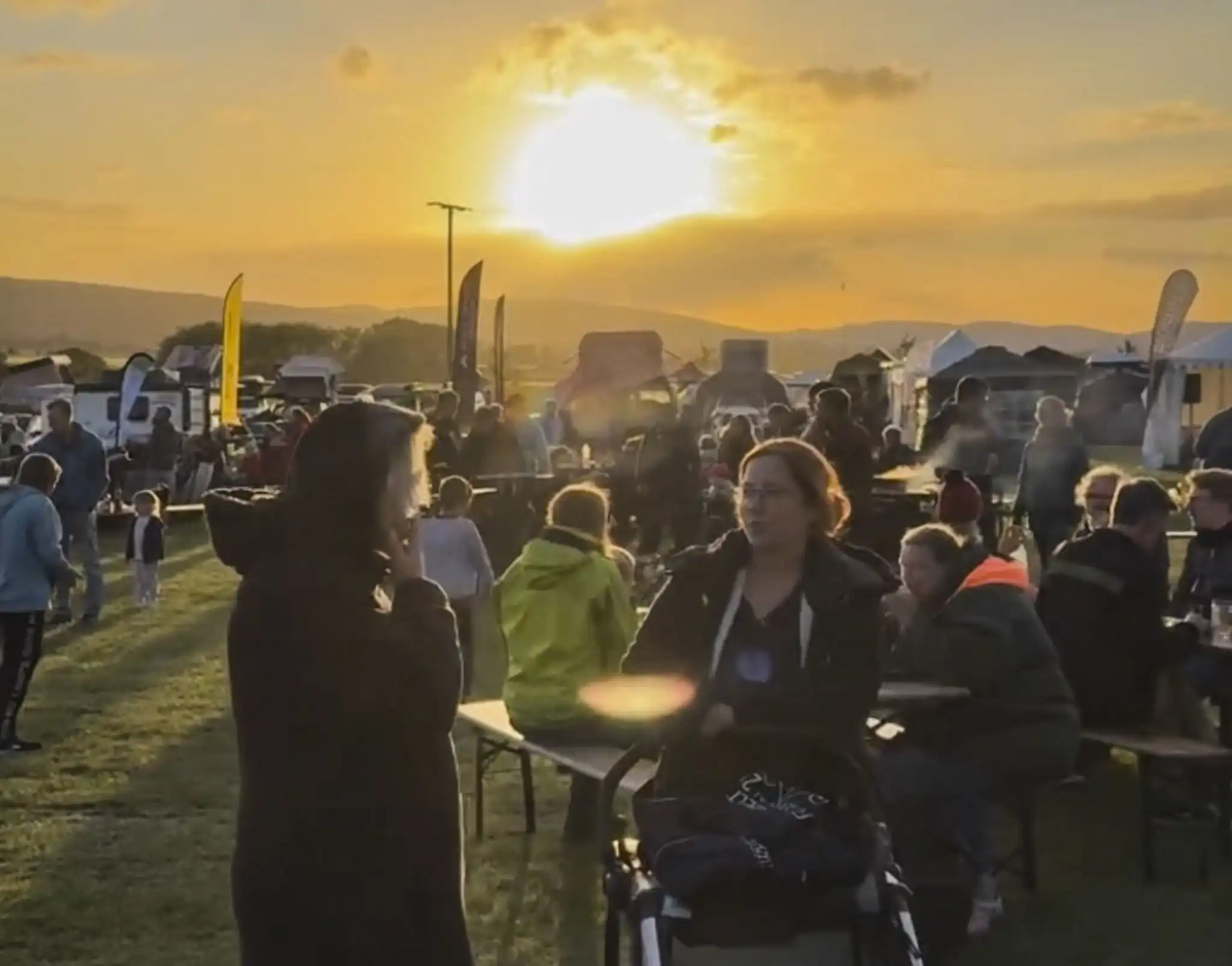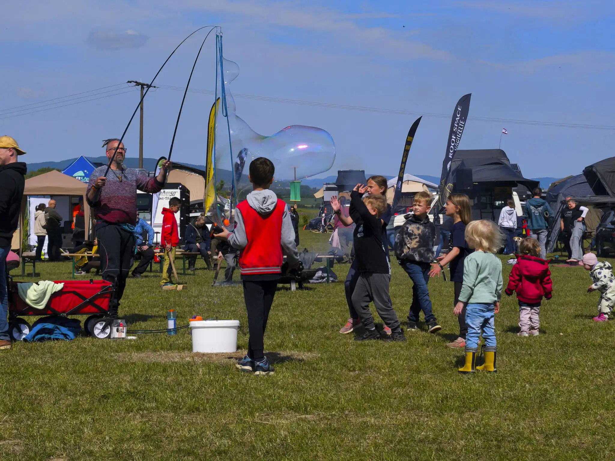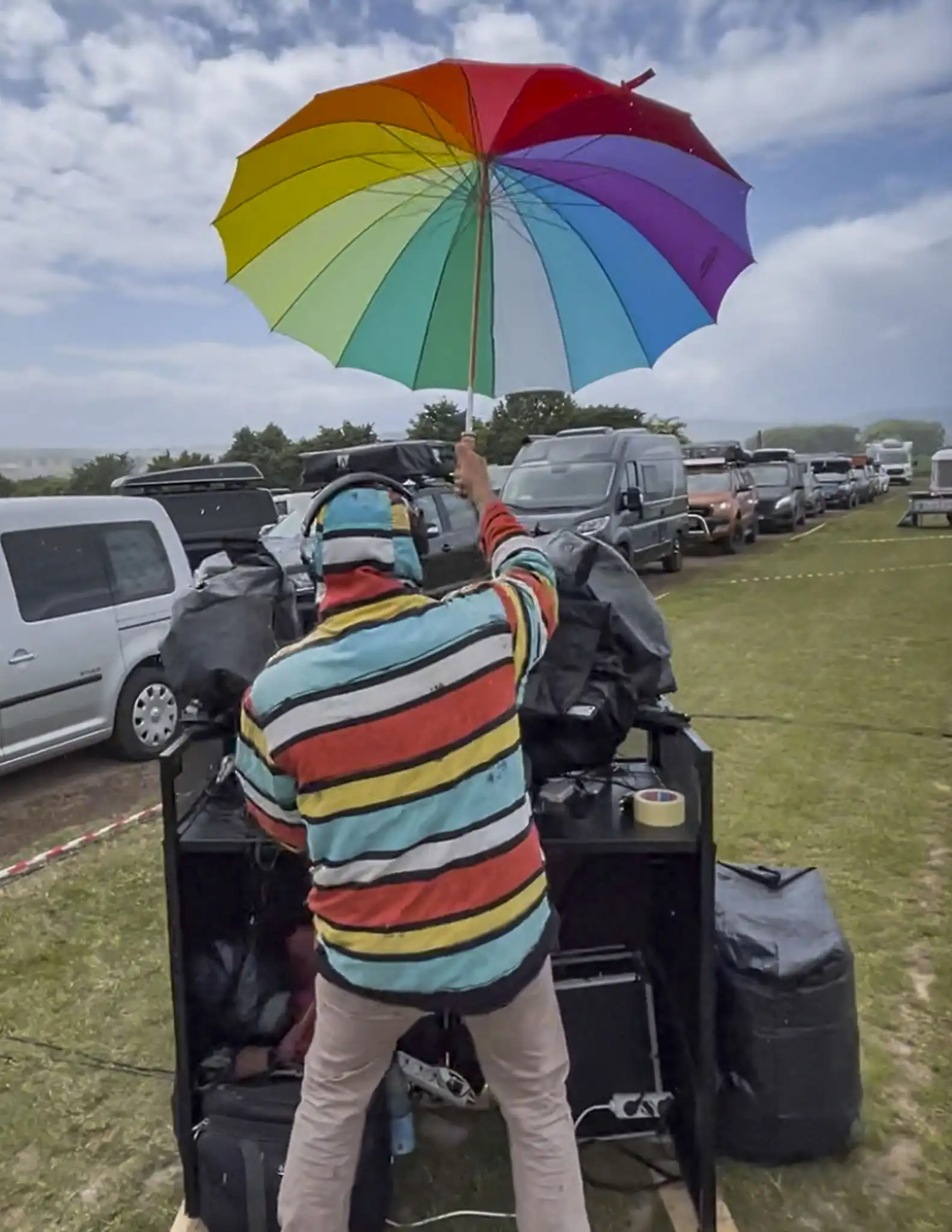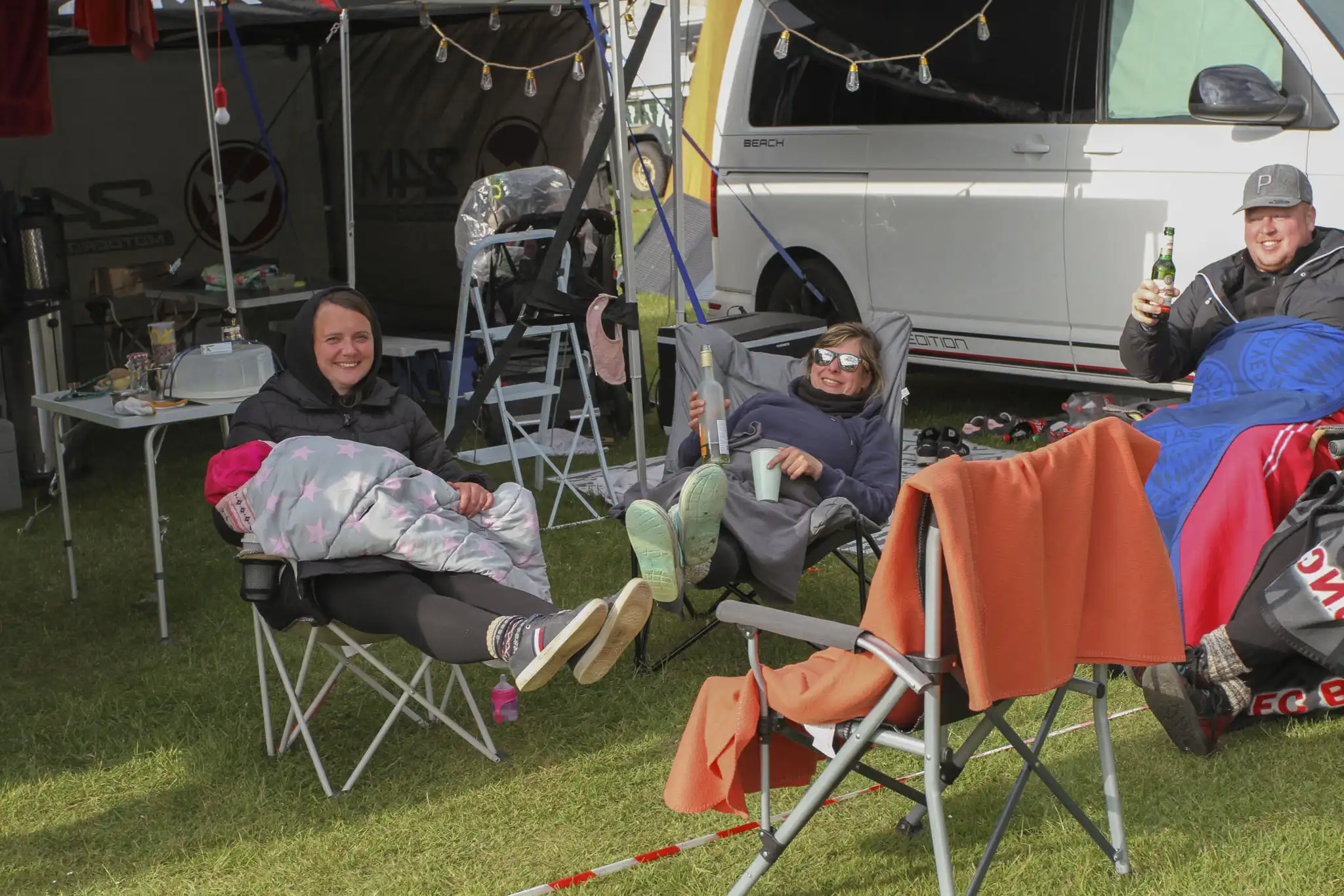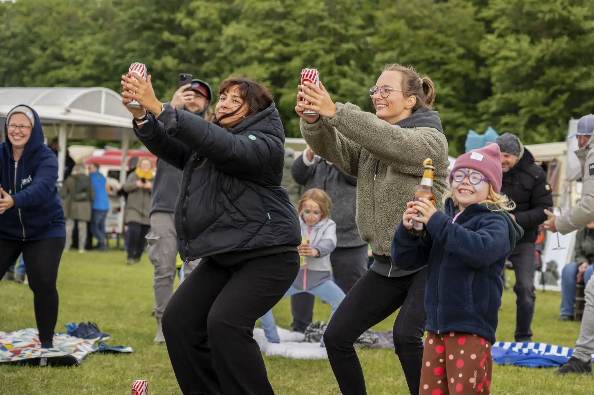 Trotz immer wieder kräftigen Regenschauern am Freitag lassen sich die Dachzeltnomaden die Laune nicht verderben. Sobald die Sonne wieder durchbricht, verwandelt sich das Gelände in ein buntes Meer aus Zelten und lachenden Gesichtern.