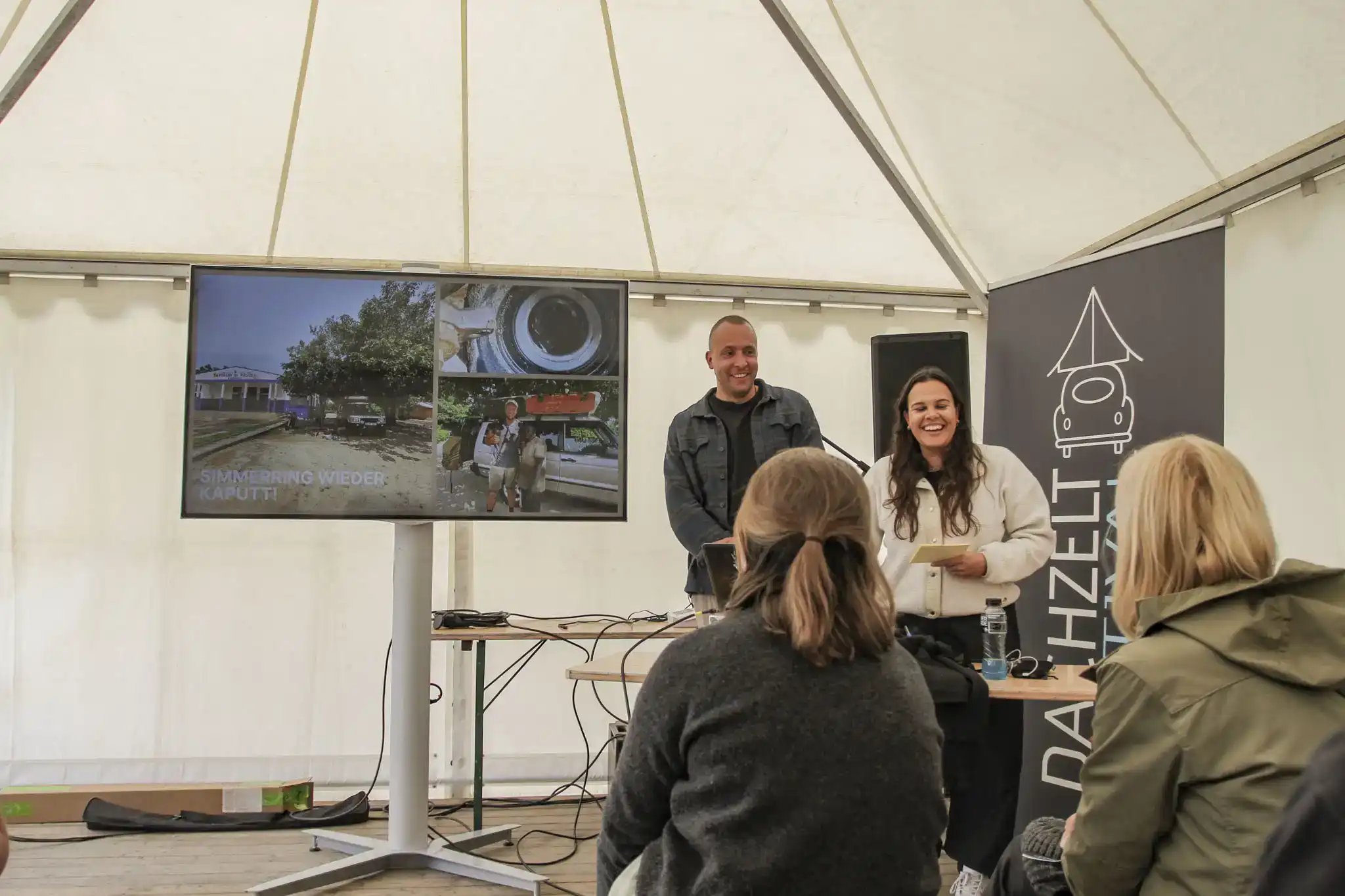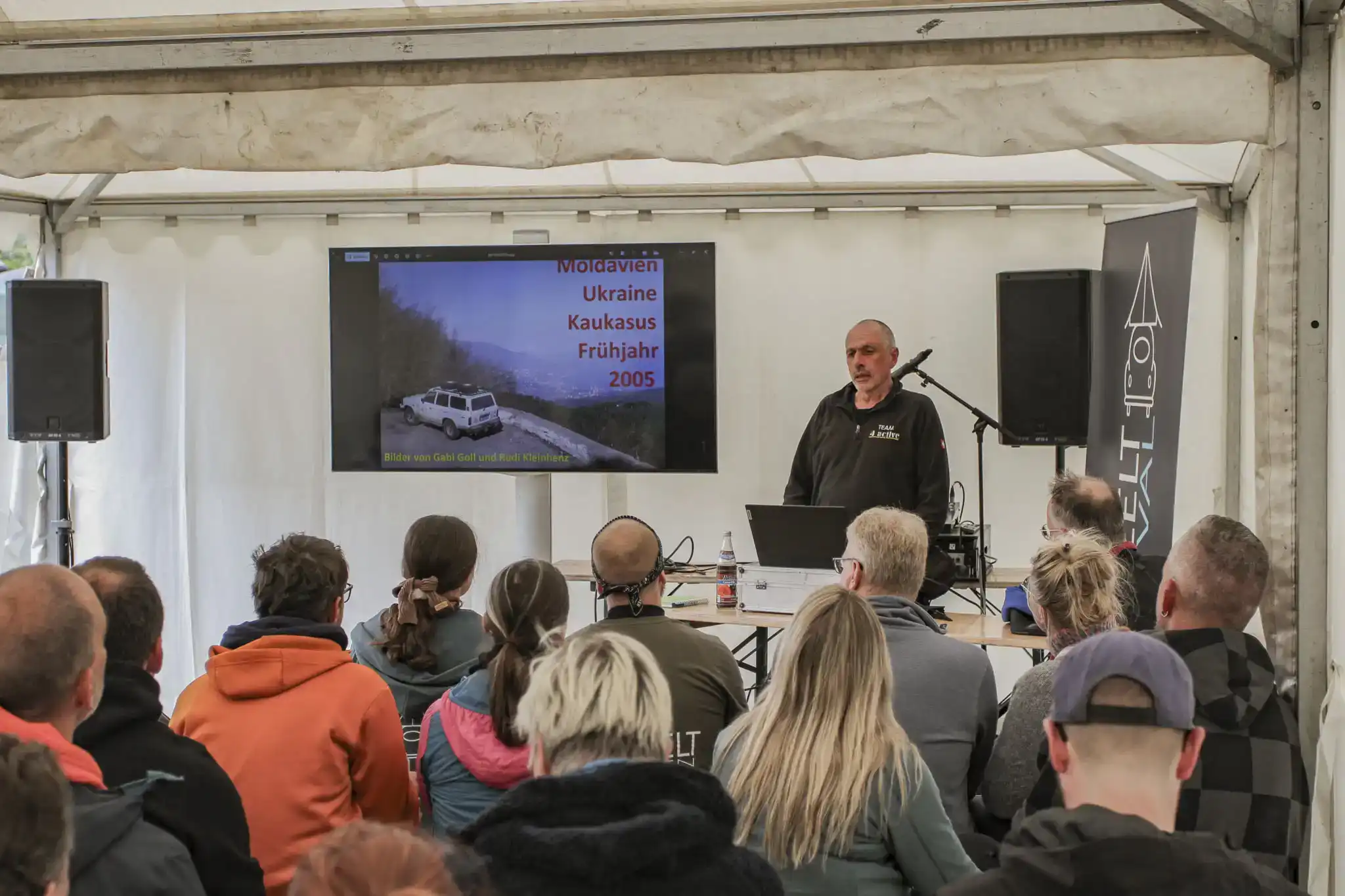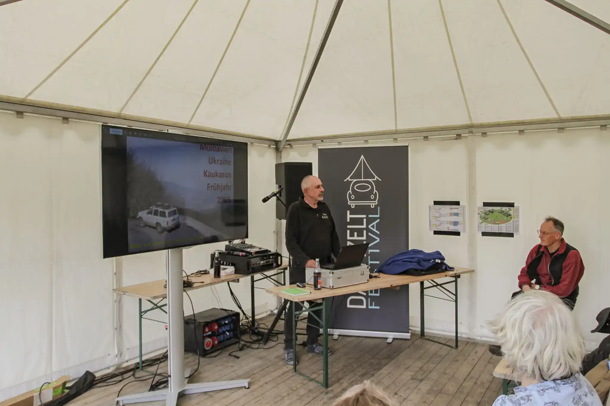 Das Vortragszelt ist Schauplatz faszinierender Reisegeschichten! Von spektakulären Afrika-Touren über Westalpen mit Dachzlet bis hin zu Angel-Tipps unterwegs – unsere Referenten nehmen das Publikum mit auf ihre Abenteuer. Besonders bewegend sind die Erfahrungsberichte zu Vollzeit-Reisen & Arbeiten unterwegs und Solo-Reisen als Frau, die Mut machen und Ängste nehmen.
