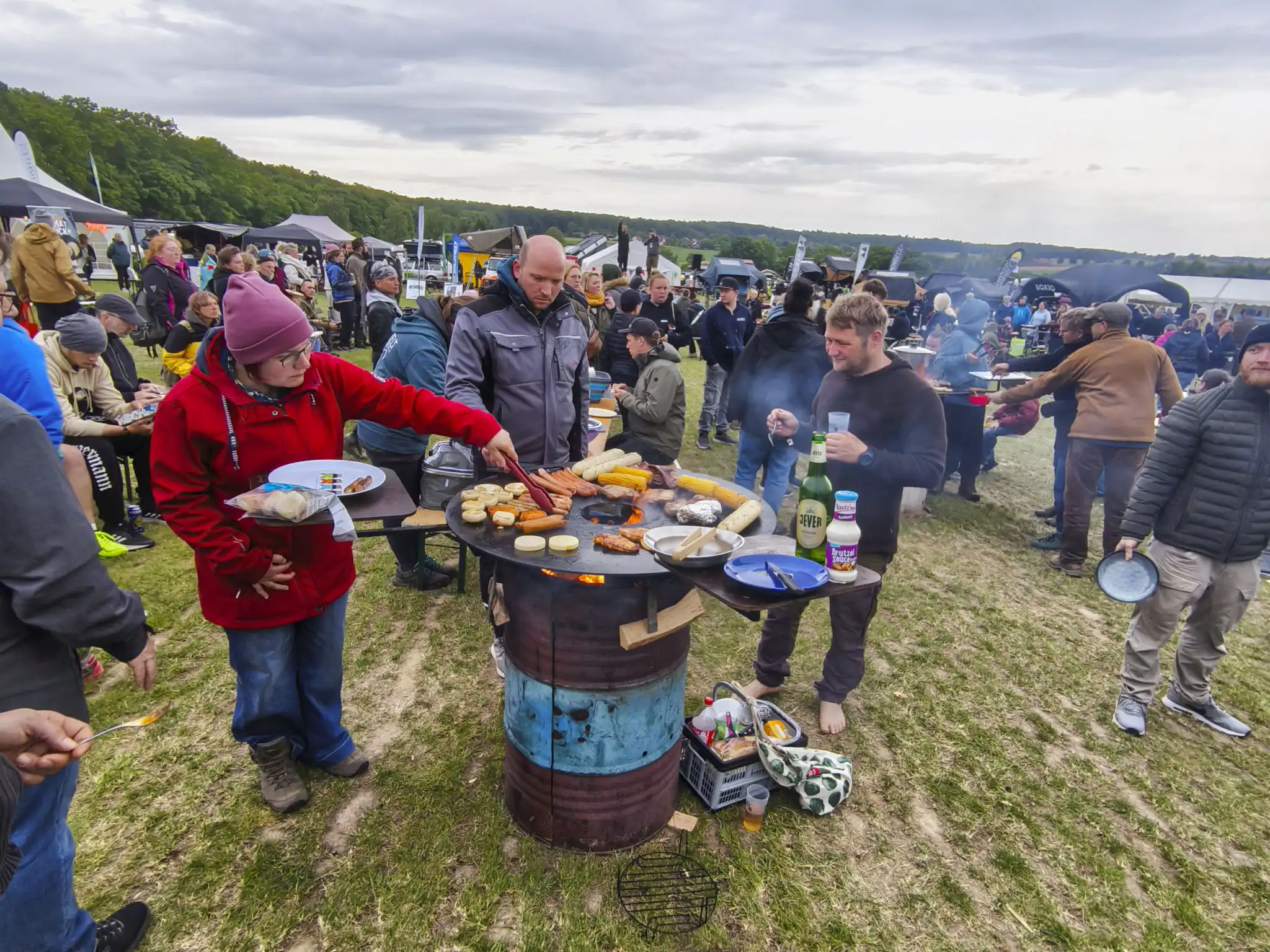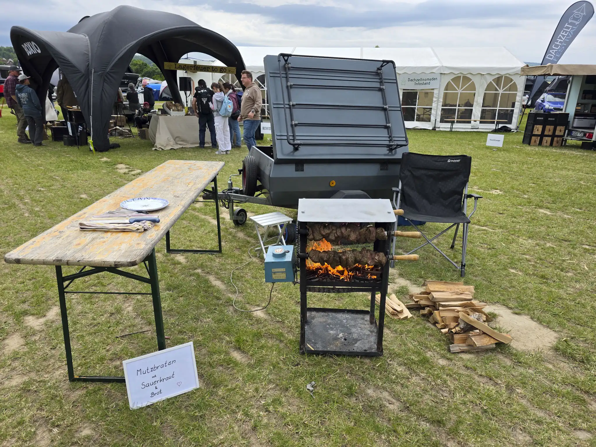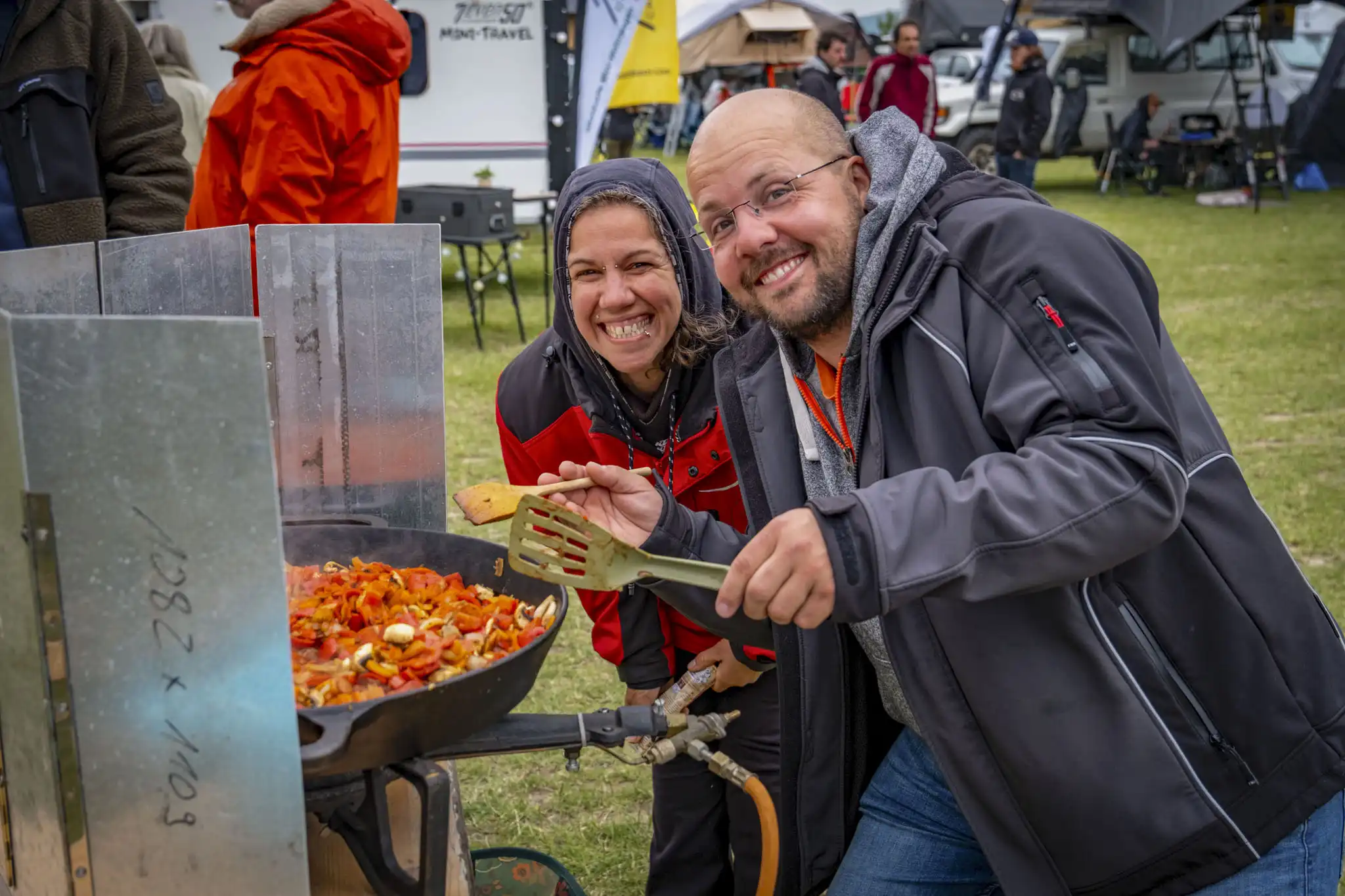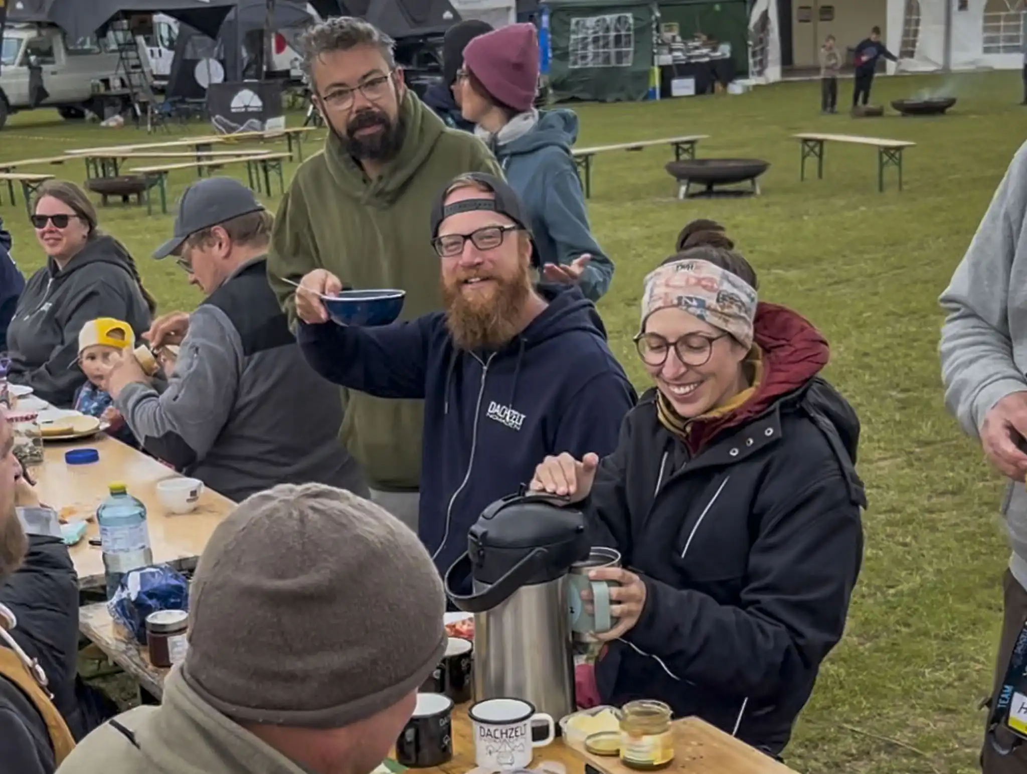 Obwohl Petrus uns mit Regen und Sonnenschein abwechselnd überrascht, bleibt die Stimmung durchweg fantastisch. Dachzeltnomaden lassen sich von einem Regenschauer nicht die Laune verderben – im Gegenteil, gemeinsam unter dem Pavillon macht es sogar noch mehr Spaß!