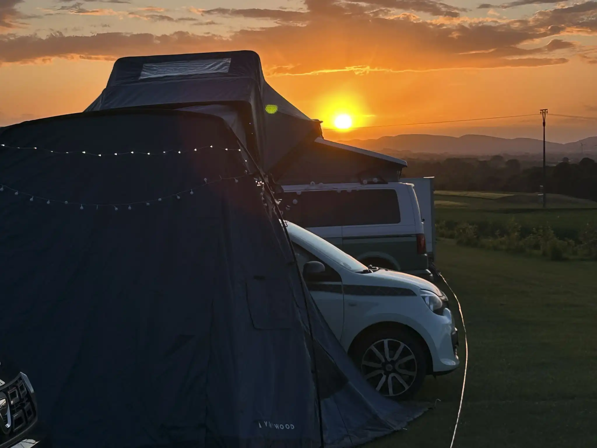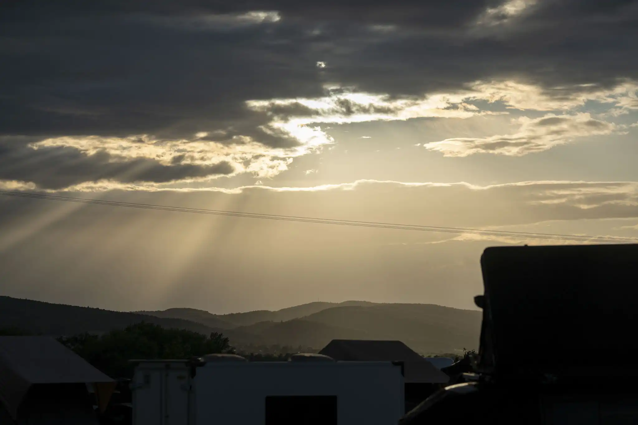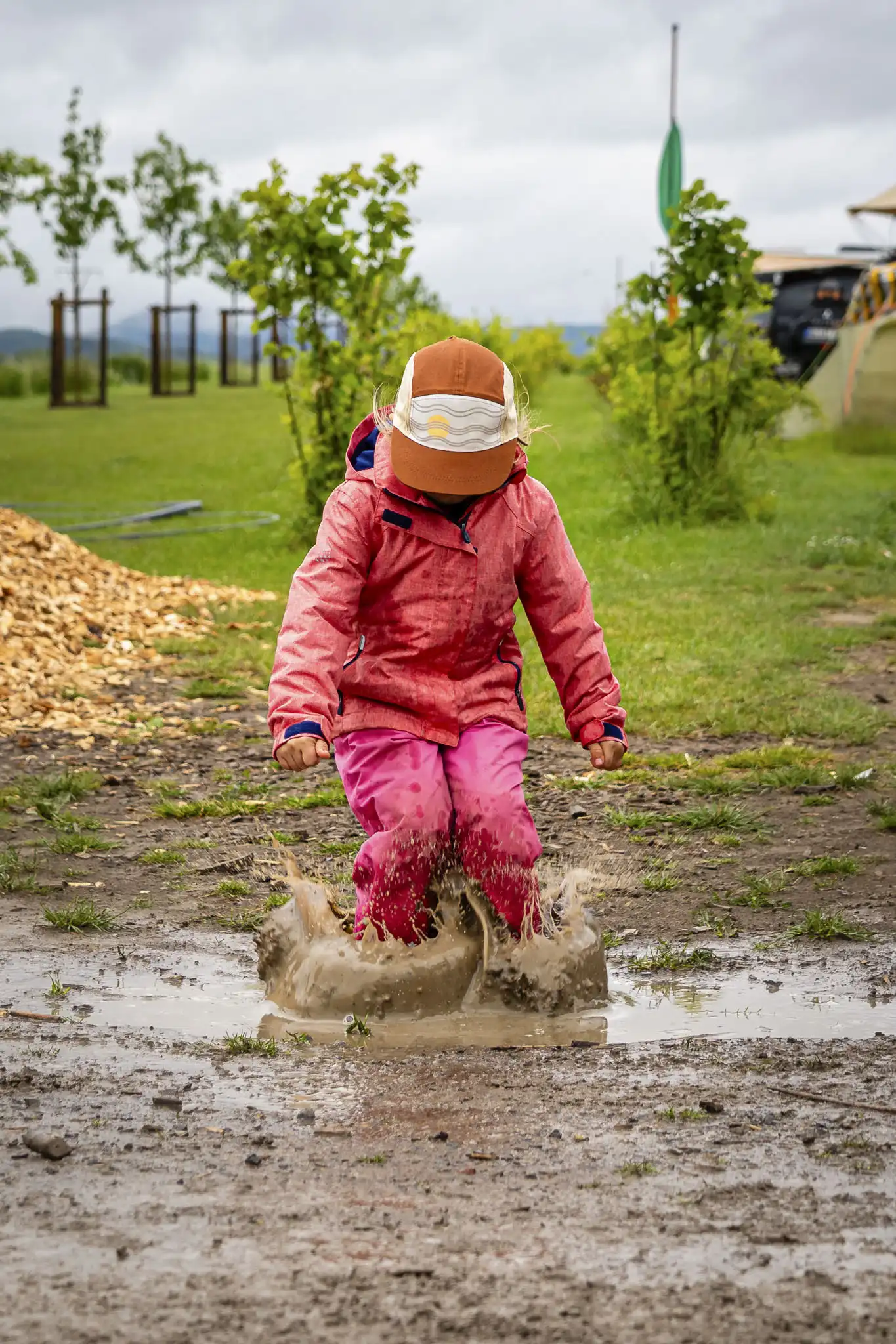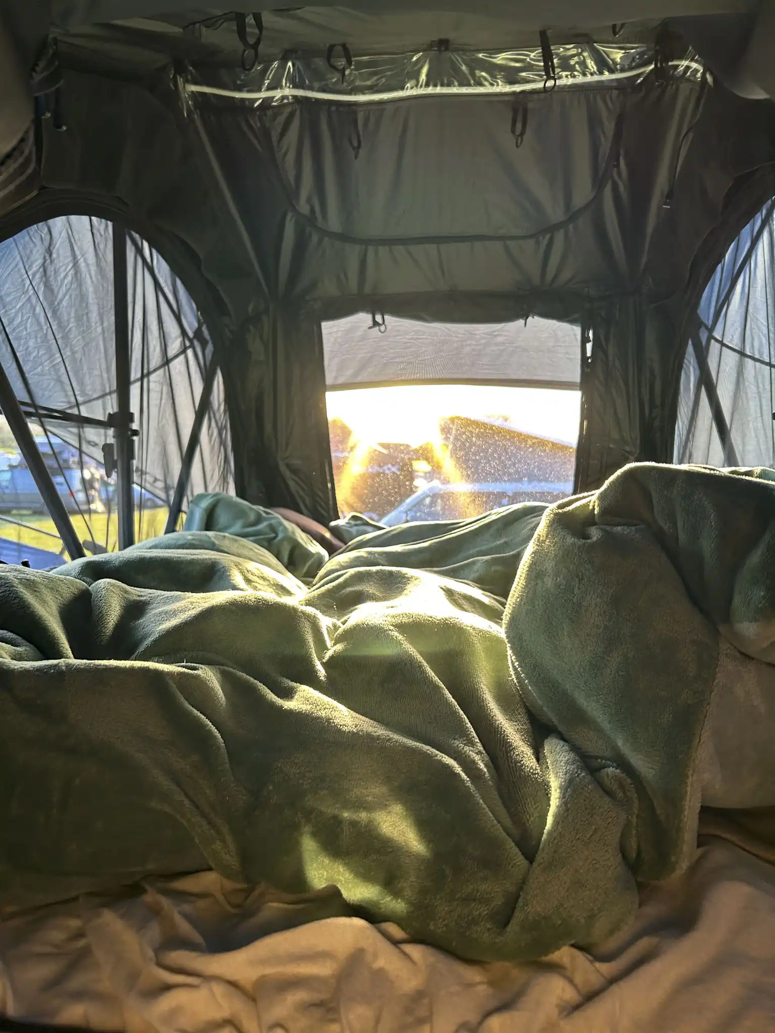 Obwohl Petrus uns mit Regen und Sonnenschein abwechselnd überrascht, bleibt die Stimmung durchweg fantastisch. Dachzeltnomaden lassen sich von einem Regenschauer nicht die Laune verderben – im Gegenteil, gemeinsam unter dem Pavillon macht es sogar noch mehr Spaß!