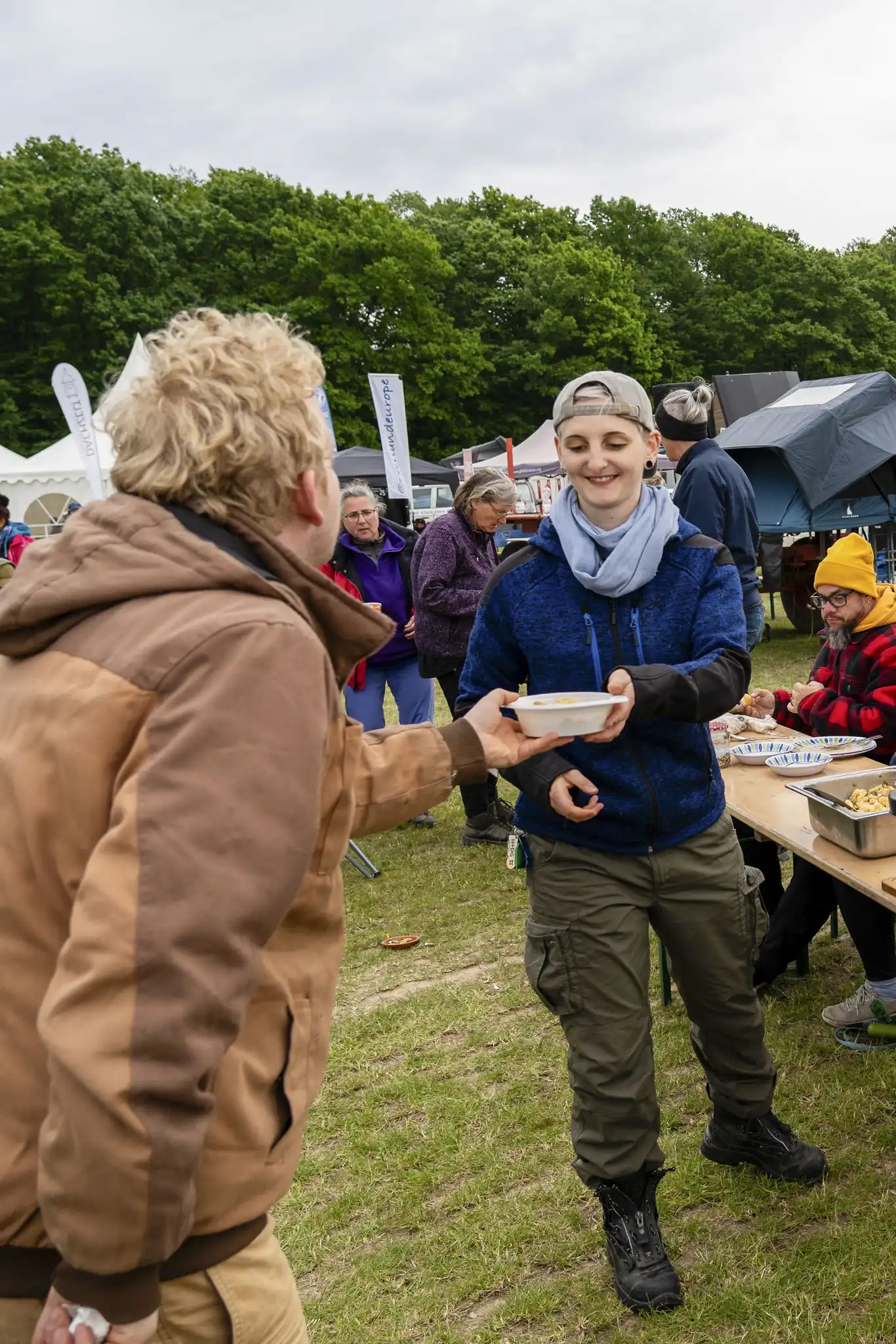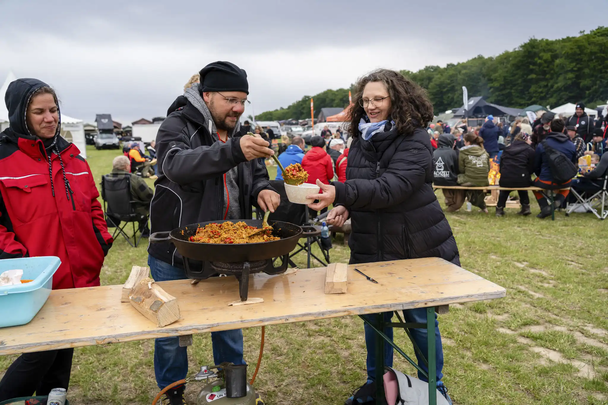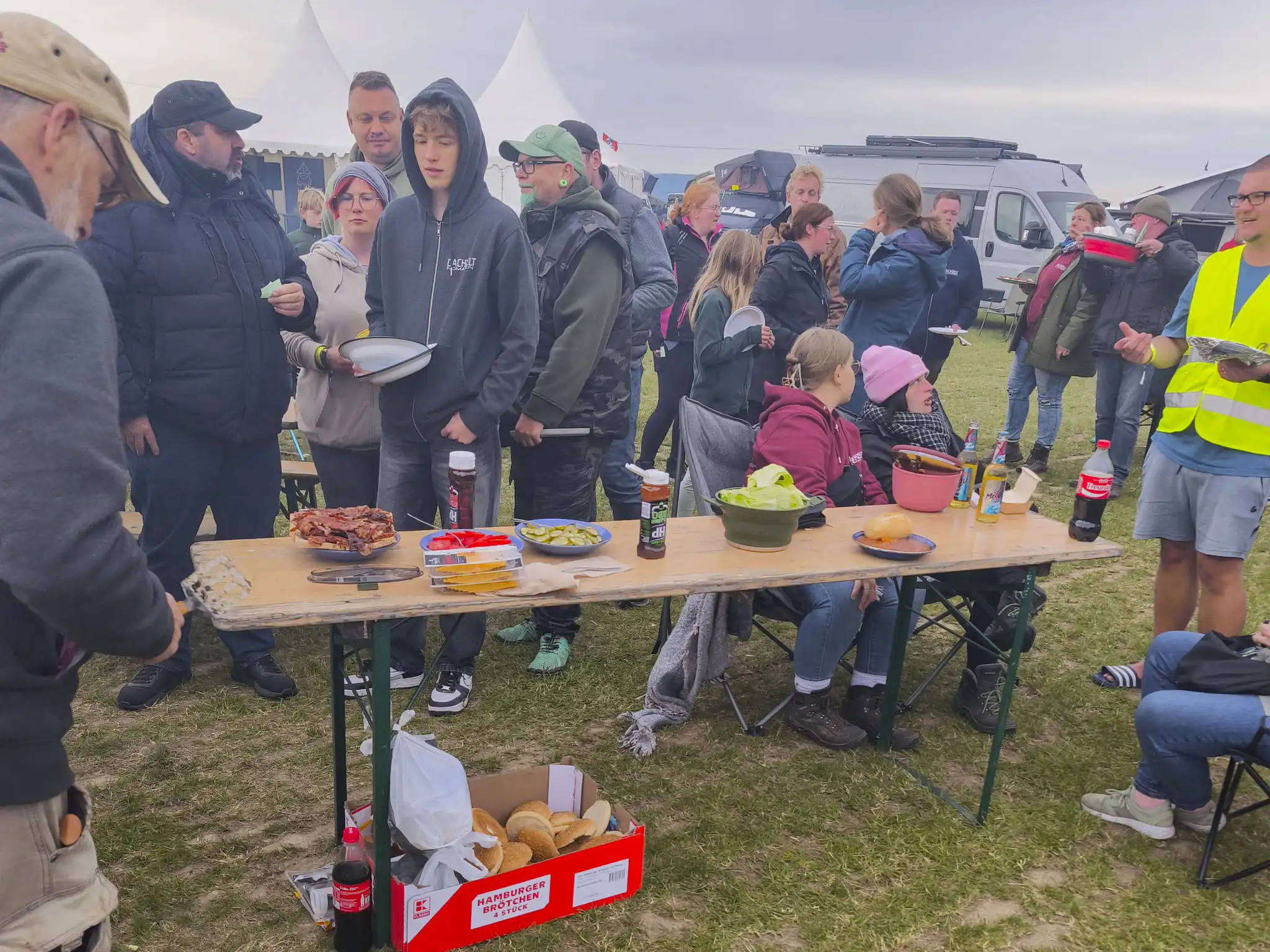 Das Prinzip „Wer zuerst kommt, mahlt zuerst“ sorgt für lebendige Atmosphäre am Spenden- & Getränkewagen, wo die begehrten Essensmarken erworben werden können. Was für eine großartige Gemeinschaftsaktion, die zeigt: Gemeinsam gut essen und dabei Gutes tun!
