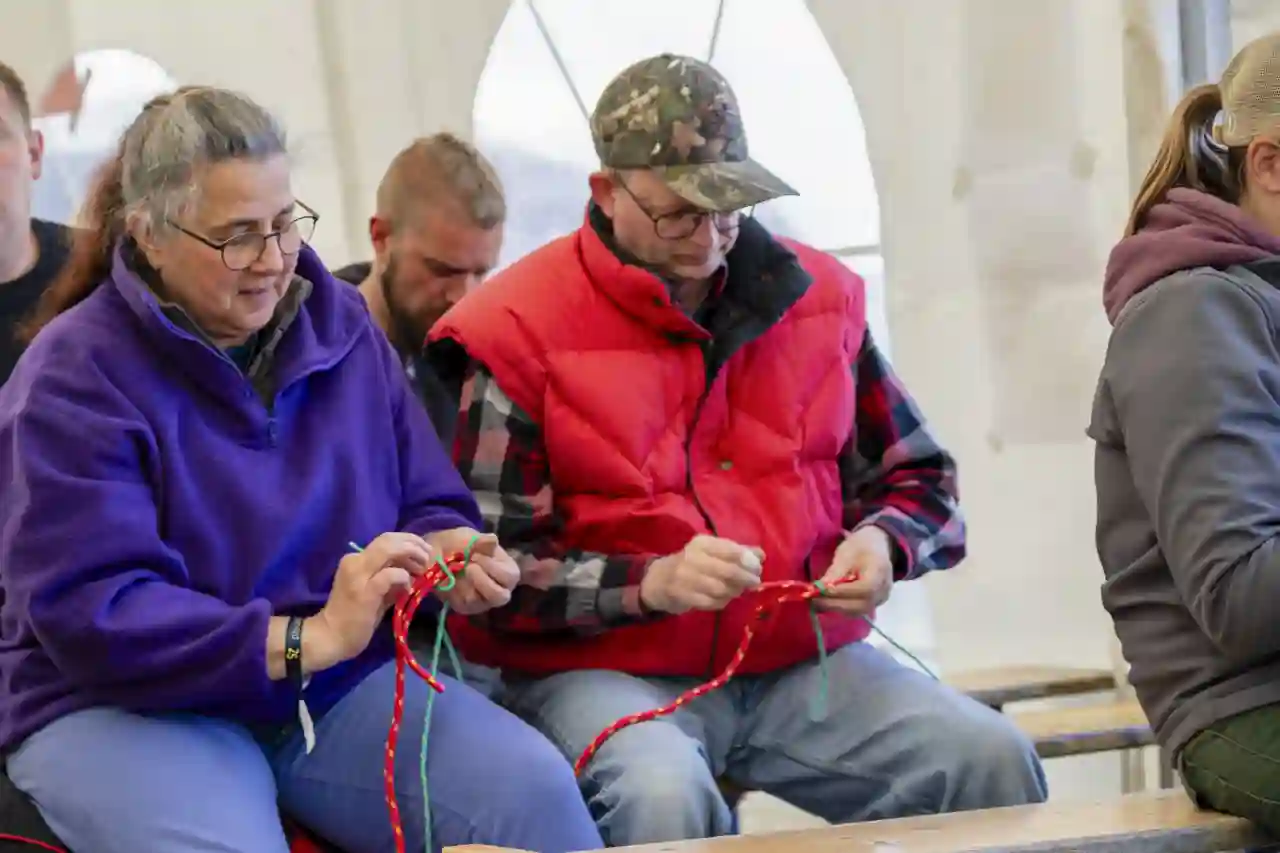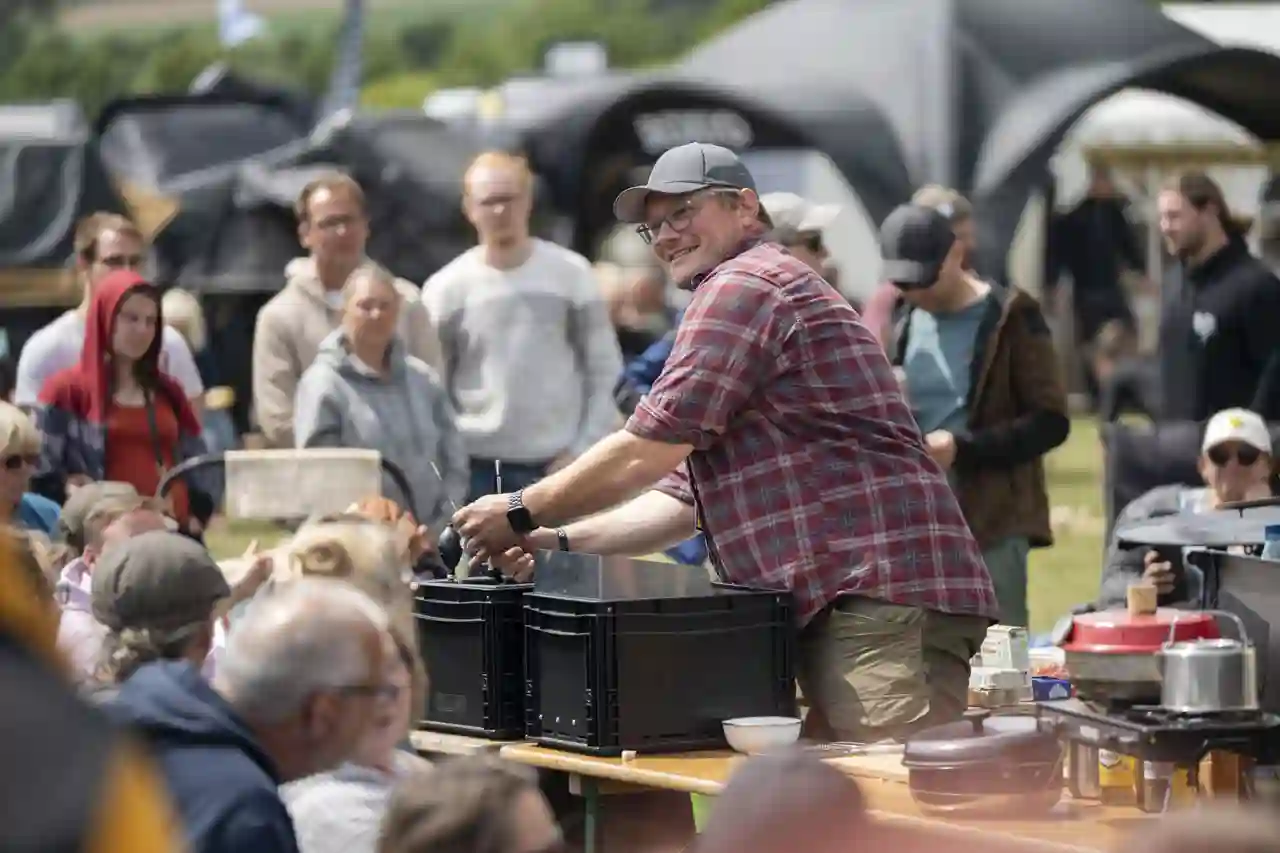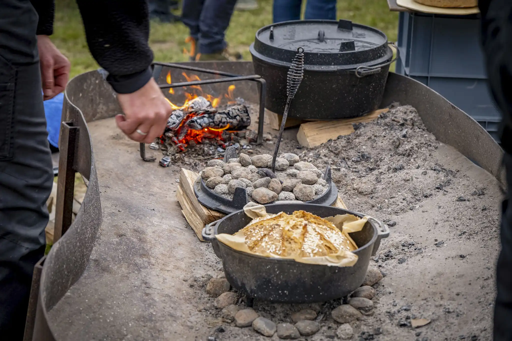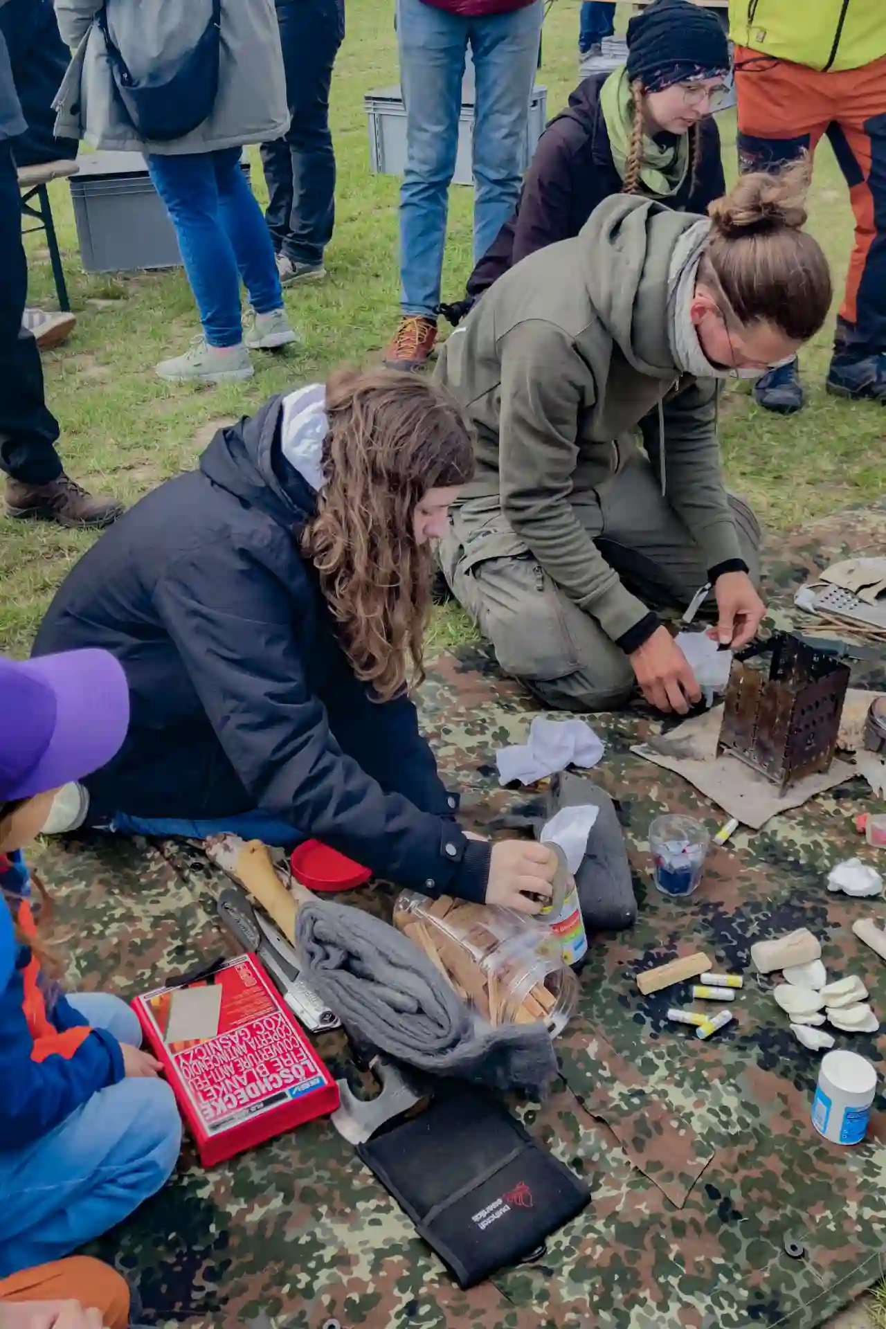Outdoor-Küche & Handwerk Unsere praktischen Workshops sind ein voller Erfolg! Teilnehmer lernen in unserem Outdoor-Kochkurs, wie man auf kleinstem Raum köstliche Gerichte zaubert. Beim Feuer-Workshop geht es zurück zu den Grundlagen – von der richtigen Technik bis zur Herstellung eigener Feueranzünder.