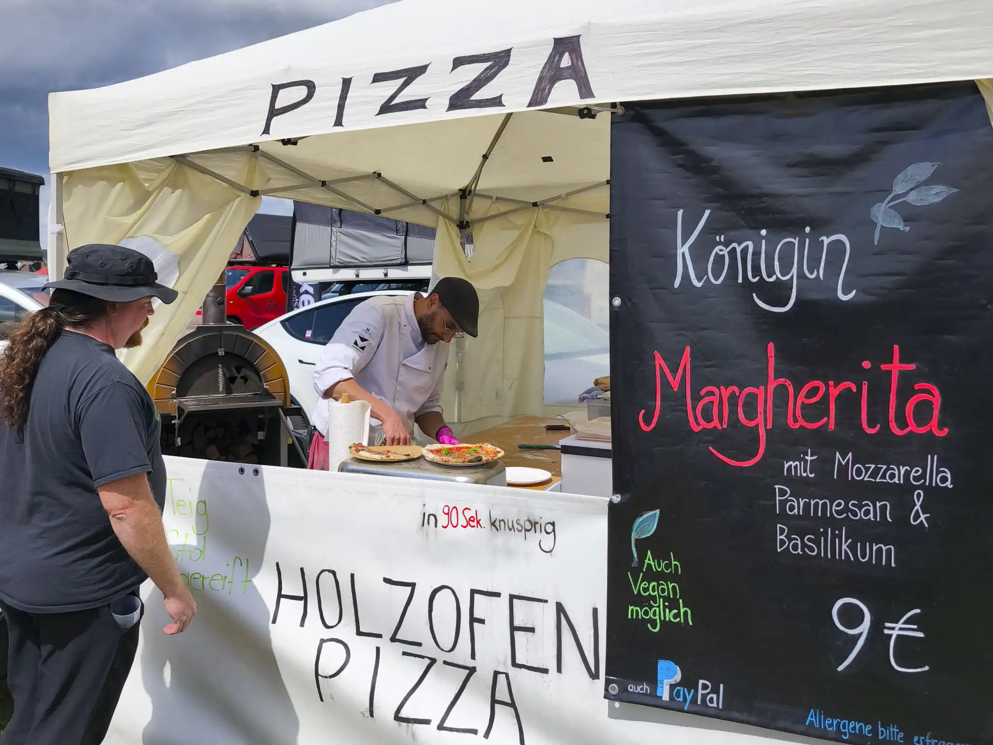 Das DACHZELT FESTIVAL 2025 bietet wieder vielfältige Gastronomie mit bewährten und neuen Partnern: Rolling Stone Pizza serviert authentische Steinofenpizza, Dr. Vegetary überzeugt wieder mit veganen Burgern und Pommes, Makowski Waffelwagen bietet knusprige Waffeln und Kaffeespezialitäten, und El Food ist neu dabei mit handgemachten Croques in verschiedenen Varianten von klassisch bis vegan.