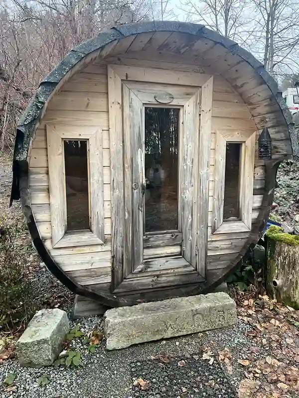 Für alle, die es sich zum Schlafen kuschelig warm machen wollten, gibt es 10 beheizte Schlaffässer, die an diesem Wochenende auch von Dachzeltnomaden gemietet werden konnten. Im Schlaffassdorf des Campingplatzes gab es außerdem eine Grillkote und eine Sauna! Absolut urig und gemütlich!