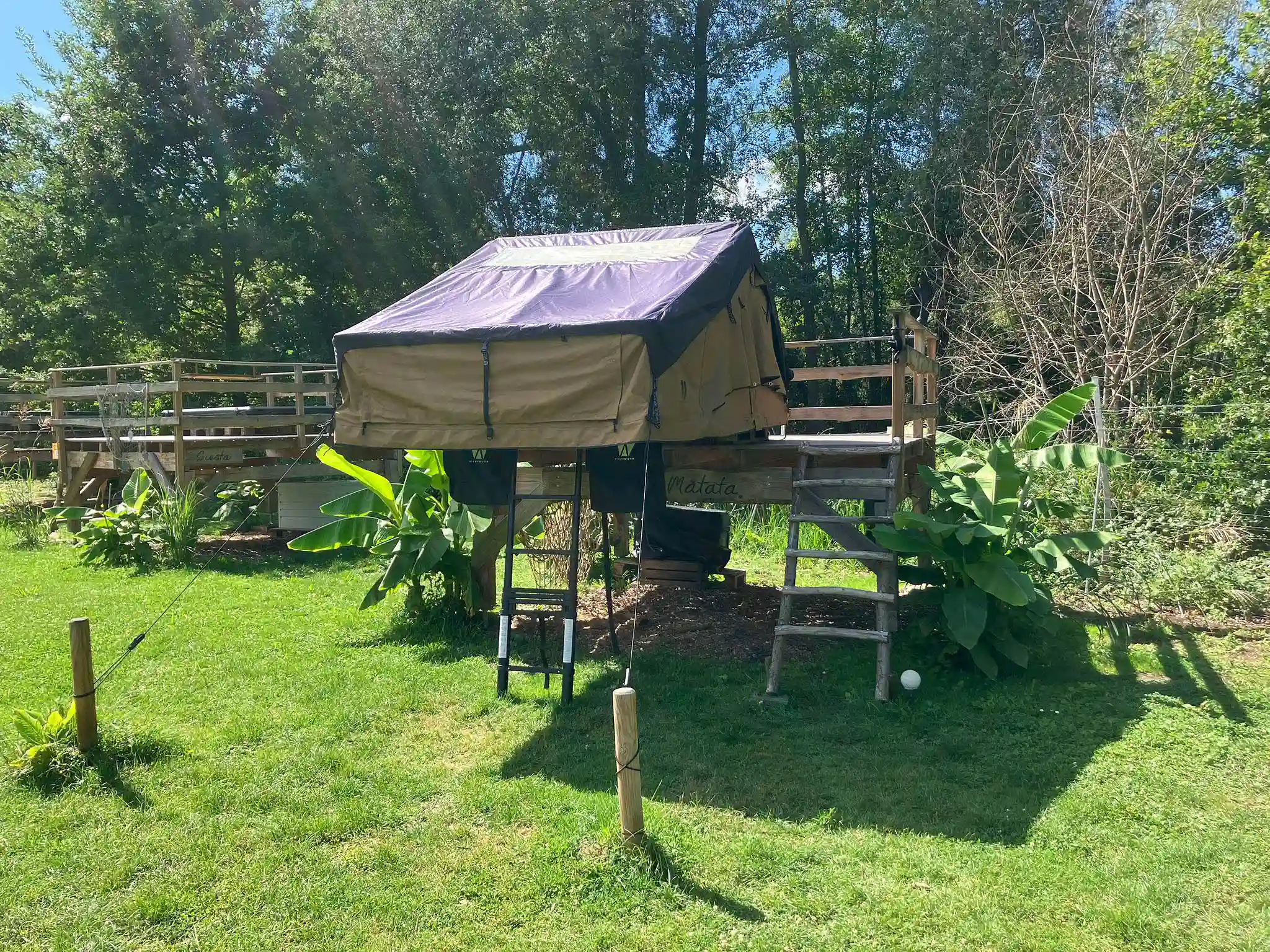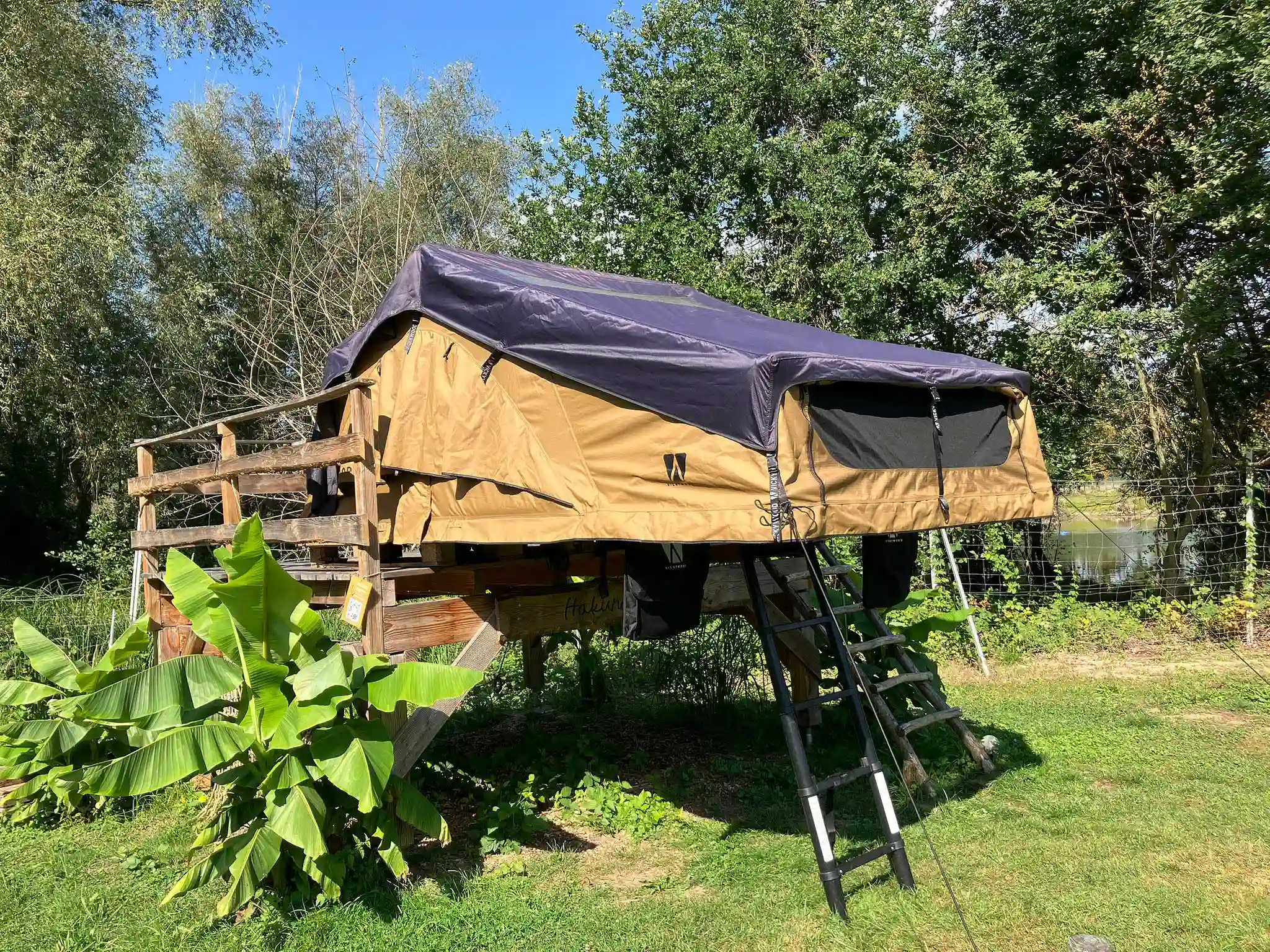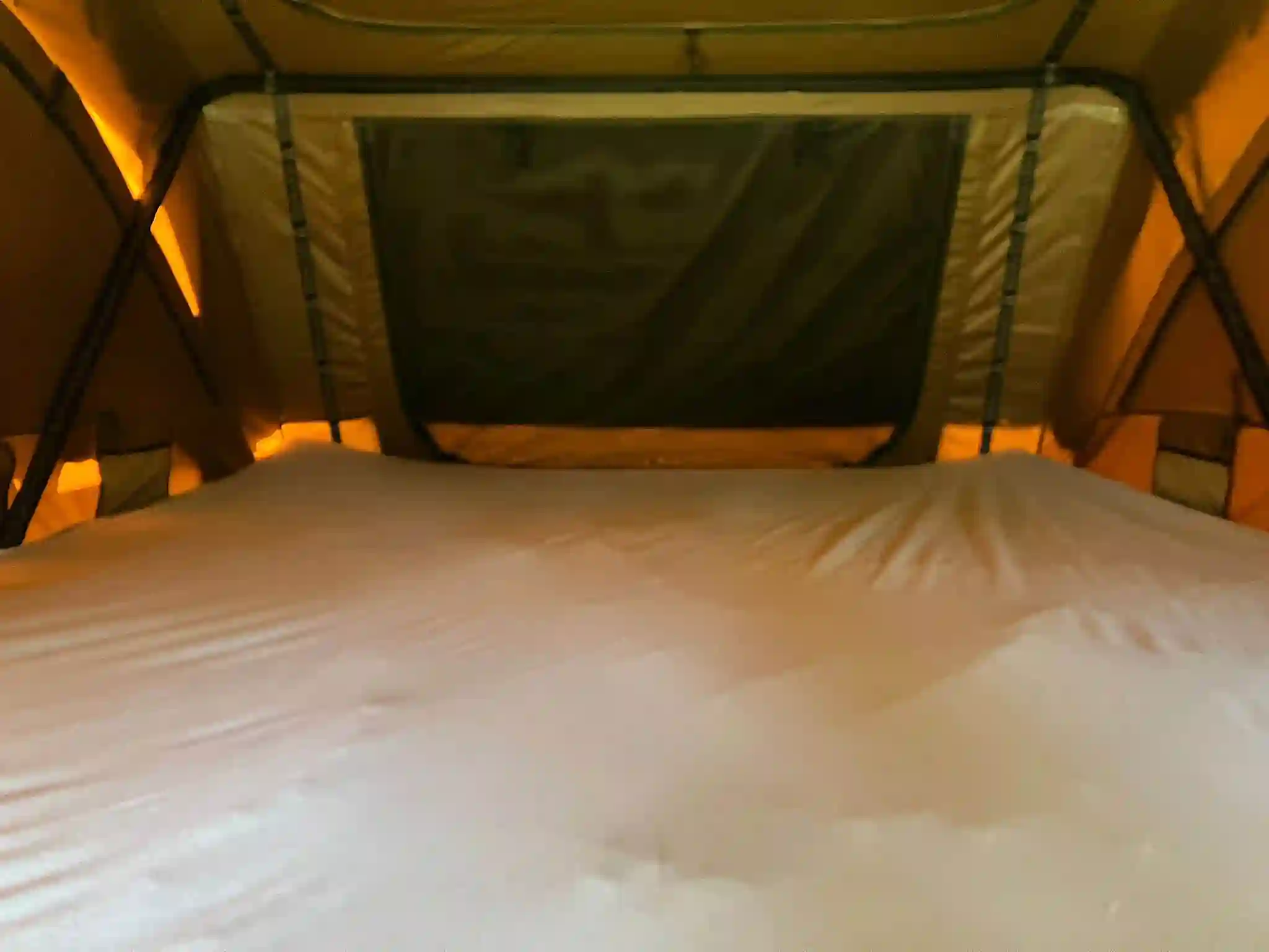Das Dachzelt ist im April 2025 fabrikneu im DACHZELT DORF Rülzheim auf der Plattform Hakuna Matata eingezogen. Seither wird es dort von unseren Gästen Probe geschlafen und war bis zum Ende der Saison etwa 50 Nächte im Einsatz.