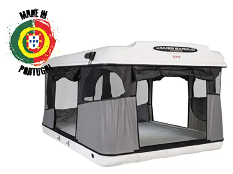 Der James Baroud Zeltstoff bietet hervorragende Belüftung und reduziert Kondensation dank straffer Spannung, die Luft durchlässt, aber Wasser abhält. Hochwertige Materialien wie der doppellagige, aluminisierte Evolution-Stoff bieten außergewöhnliche thermische und akustische Isolation. Jahrzehntelange Handwerkserfahrung garantiert präzise Zuschnitte und robuste Nähte, die extreme Haltbarkeit und Wetterbeständigkeit sicherstellen. Mit einer branchenführenden 5-Jahres-Garantie steht James Baroud für höchste Qualität und Langlebigkeit.