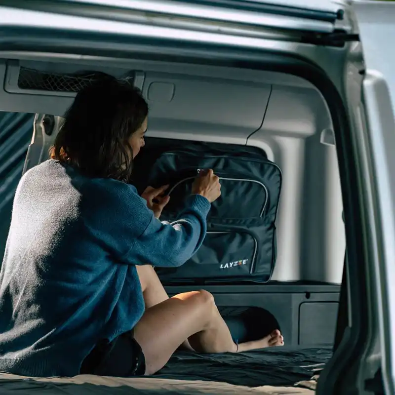 Ohne Aufwand mehr Stauraum in deinem Fahrzeug? Egal, ob für deine Hobbys, Beruf, Camping oder die alltäglichen Dinge des Lebens die man sicher verstauen will. Mit der LAYZEE Fenstertasche schaffst du es mit Leichtigkeit Ordnung in deinem Fahrzeug zu halten. Vor allem beim Campen erleichtern dir die Fenstertaschen als mobiler Kleiderschrank das Leben und du verwandeln in 2 Minuten dein Alltagsfahrzeug in einen Minicamper.