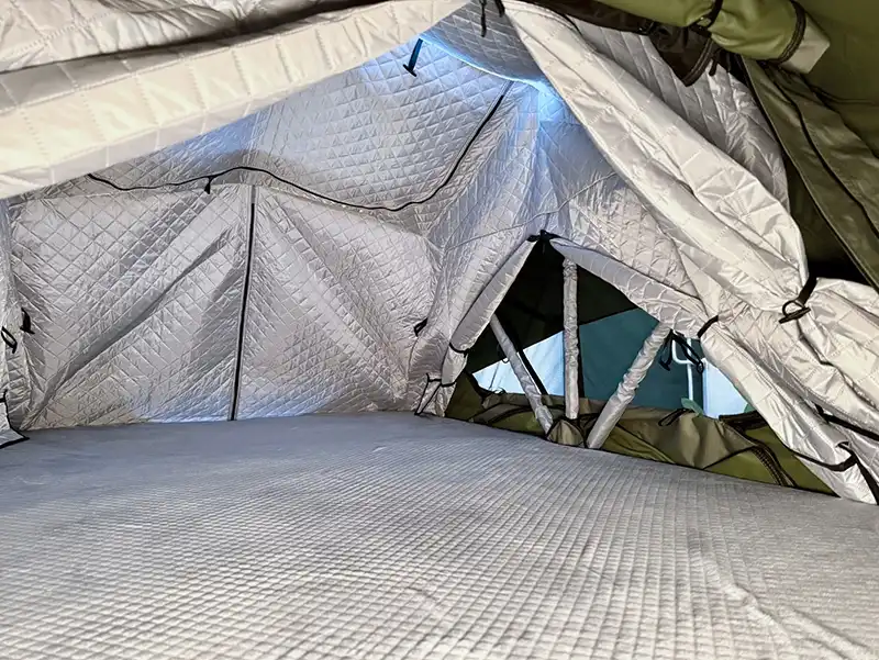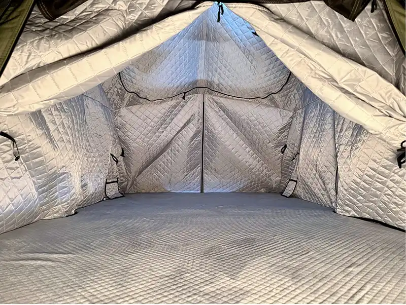 Das punii Thermoinnenzelt hält dich auch an kalten Nächten zuverlässig warm und macht dein Dachzelt noch gemütlicher. Es wird einfach am Zeltgestänge eingehängt und passt in alle moenga Modelle – bitte die passende Größe bestellen. Perfekt als Ergänzung für Frühling, Herbst und kalte Winternächte, sorgt das Thermo-Inlay für ein kuscheliges, zugfreies Raumklima und extra Wohlfühlfaktor auf jedem Abenteuer.