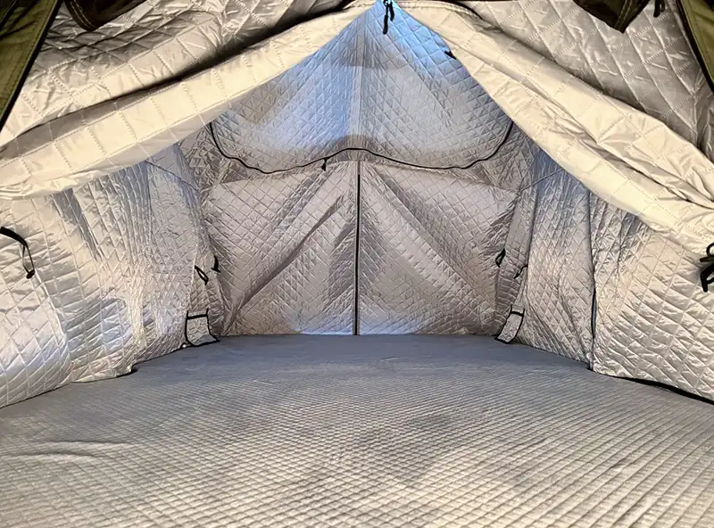 Das punii Thermoinnenzelt hält dich auch an kalten Nächten zuverlässig warm und macht dein Dachzelt noch gemütlicher. Es wird einfach im Zelt eingehängt und ist passend für das toa S Hartschalenzelt. Perfekt als Ergänzung für Frühling, Herbst und kalte Winternächte, sorgt das Thermo-Inlay für ein kuscheliges, zugfreies Raumklima und extra Wohlfühlfaktor auf jedem Abenteuer.