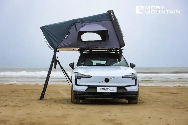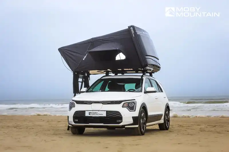 Das Hybriddachzelt Peak XL von Moby Mountain ist für spontane Abenteuer konzipiert und bietet Platz für bis zu drei Erwachsenen oder zwei Erwachsene und ein Kind. Die ABS-Hartschalenbox hat eine ideale Größe für die meisten Autodächer und passt mit seinem Gewicht von ca. 62 kg inklusive Leiter und Matratze auf die meisten gängigen Fahrzeuge.